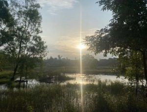 Ich lebe in einer ländlichen Gegend, daher ist es sehr ruhig. Morgens hört man Hähne und Kühe, was mich an Besuche bei meiner Großmutter zu Hause erinnert. Die riesigen grünen Felder (die nach dem Monsun jetzt weniger grün sind) sind wunderschön.